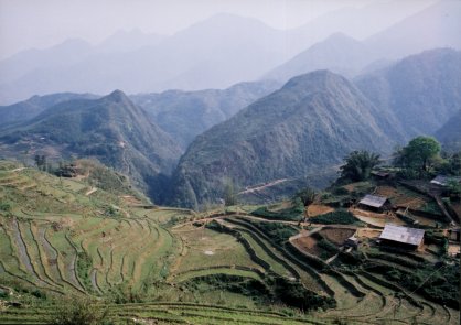 Minority village near Sapa. The deep valleys run down from the ridges of Fansipan (the highest mountain in Vietnam), close to the Chinese border |